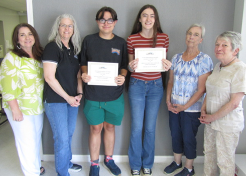 HoH Executive Director Denise Melton, Board Chair Sara Bradshaw, Scholarship recipients Hayden Houston and Cheyenne Davis, HoH Volunteer Vicky Kennedy, and BOD member Zoe Clark. Not pictured is scholarship recipient Bishop Higgins