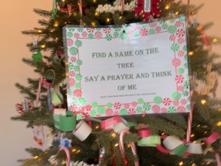 To commemorate the occasion, a Christmas tree was beautifully decorated with handmade ornaments, each bearing the first name of a child. The tree also featured paper chains and strung popcorn, evoking the warmth and nostalgia of an old-fashioned family tree. At the event, a heartfelt message was placed on the tree for all attendees: